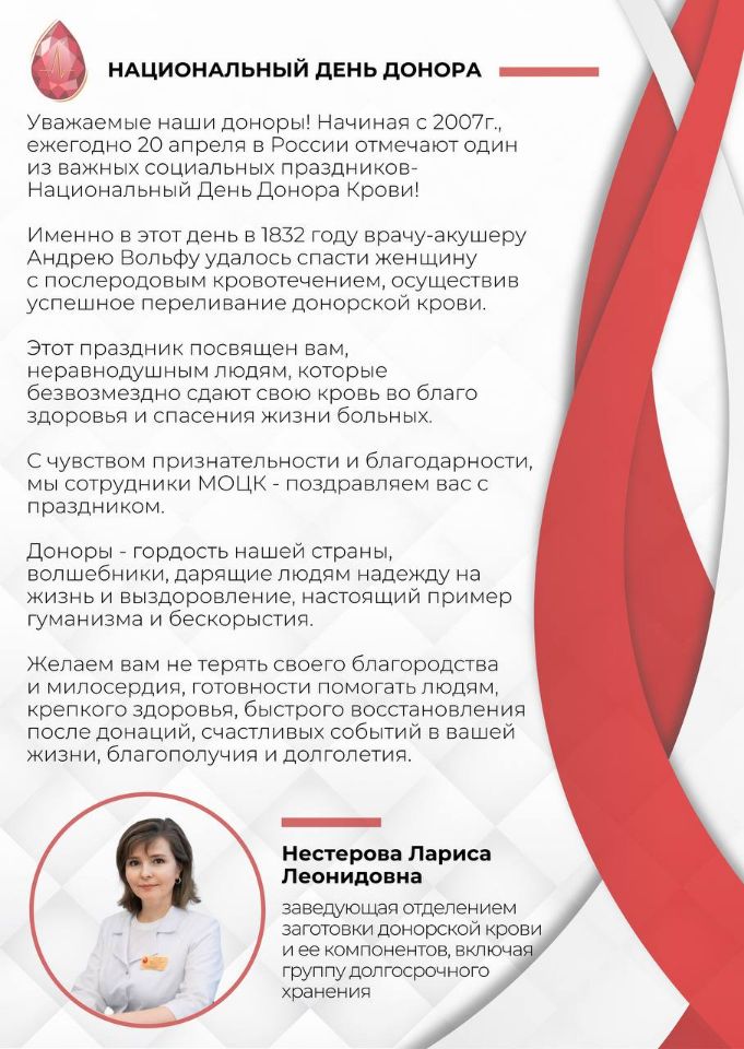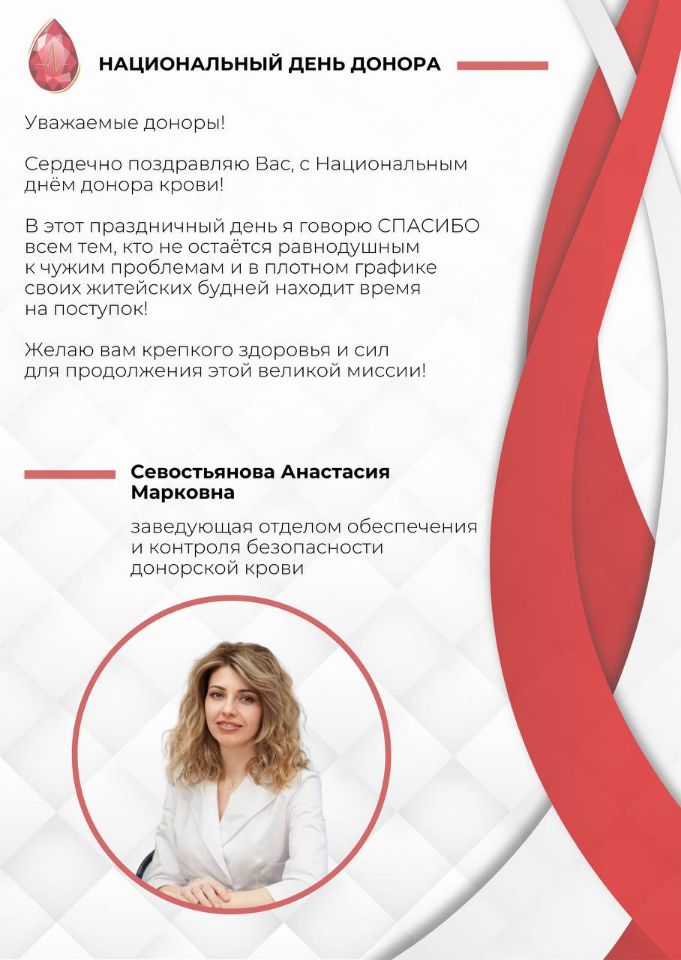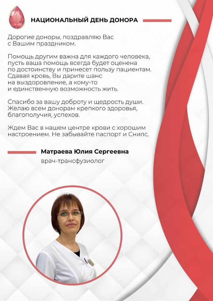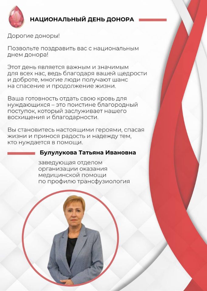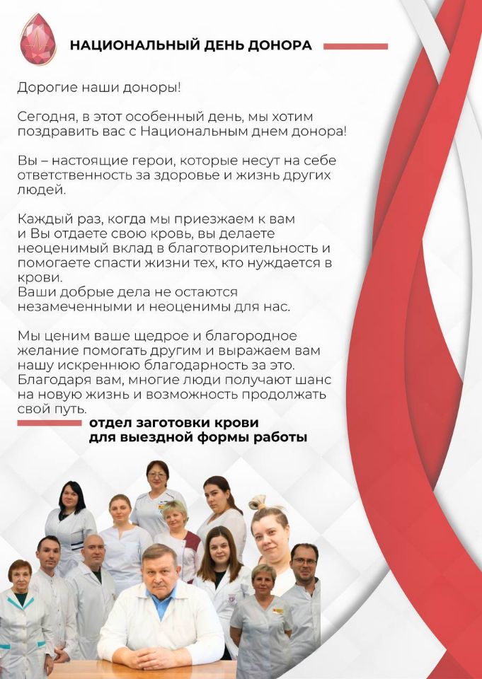 В этот день мы говорим о тех, кто дарит свою кровь, чтобы спасти чью-то жизнь. Сегодня наш Центр крови хочет поздравить всех, кто принимает участие в этом благородном деле.
